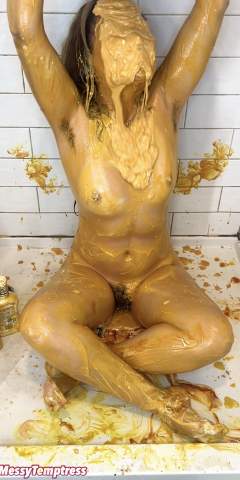 Luscious Laura joined MrMuck in a big tub filled with warm carmel