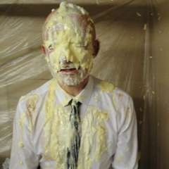 Slaps smeared pies all over his business suit by megapies